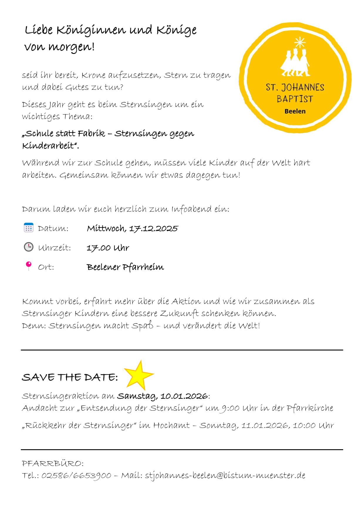 Herzlich willkommen auf der Homepage der katholischen Kirchengemeinde St. Johannes Baptist.