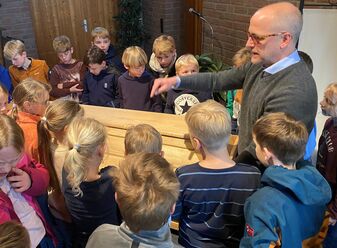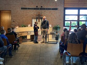Klar und kindgerecht gab Frank Hankemann, der wie in den letzten Jahren für diesen Nachmittag gewonnen werden konnte, Einblicke in seinen Beruf als Bestatter.
