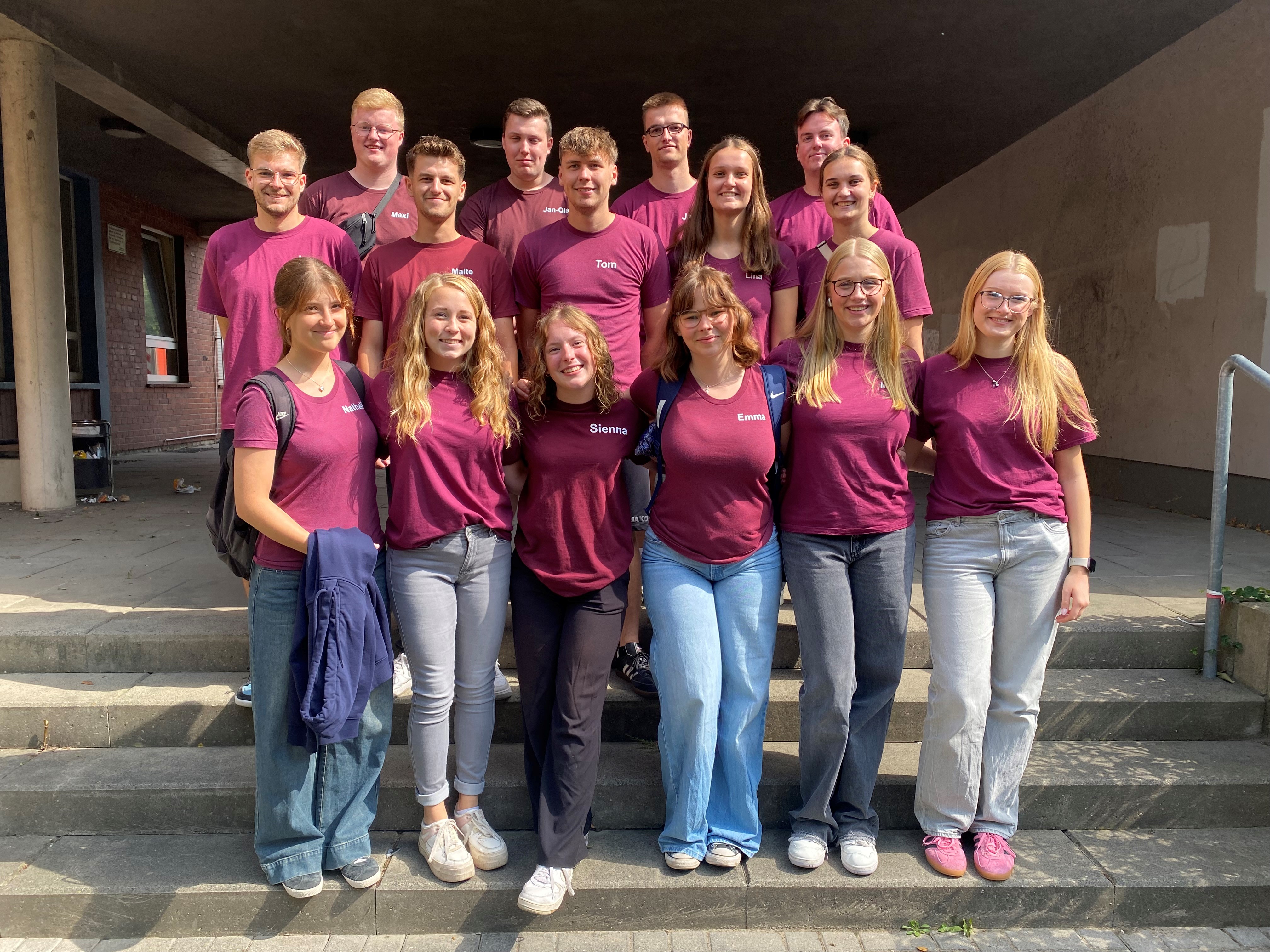 BETREUERINNEN & BETREUER 2025 - Oben von links: Maximilian Grote, Jan-Ole Ströker, Jakob Birkemeier, Nick Zumbusch - Mitte von links: Jan Gnegel, Malte Drees, Tom Hofene, Lina Blienert, Sophia Blienert - Unten von links: Nathalie Managadse, Zoe Specht, Sienna Jüttner, Emma Hofene, Merle Brinkmann, Mara Tiggemann - Auch mit dabei: Eddie Zumbusch