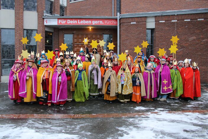 Am Samstag, dem 10. Januar 2026, trotzten viele Sternsinger der winterlichen Kälte und dem Schnee, um für benachteiligte Kinder einzustehen. Mit leuchtenden Sternen auf dem Weg zogen bunte Gruppen von Kindern durch unsere Gemeinde und sammelte Spenden für Kinder in Not.
