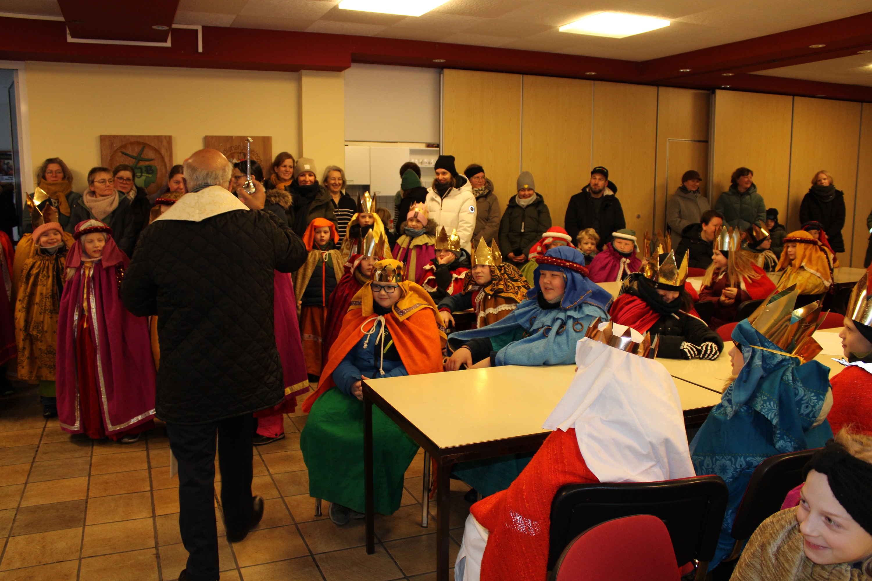 Der Tag begann um 9.00 Uhr mit einer besinnlichen Andacht im Pfarrheim, bevor die Aussendung auf die Straßen ging und die Sternsinger von Tür zu Tür um Hilfe baten.