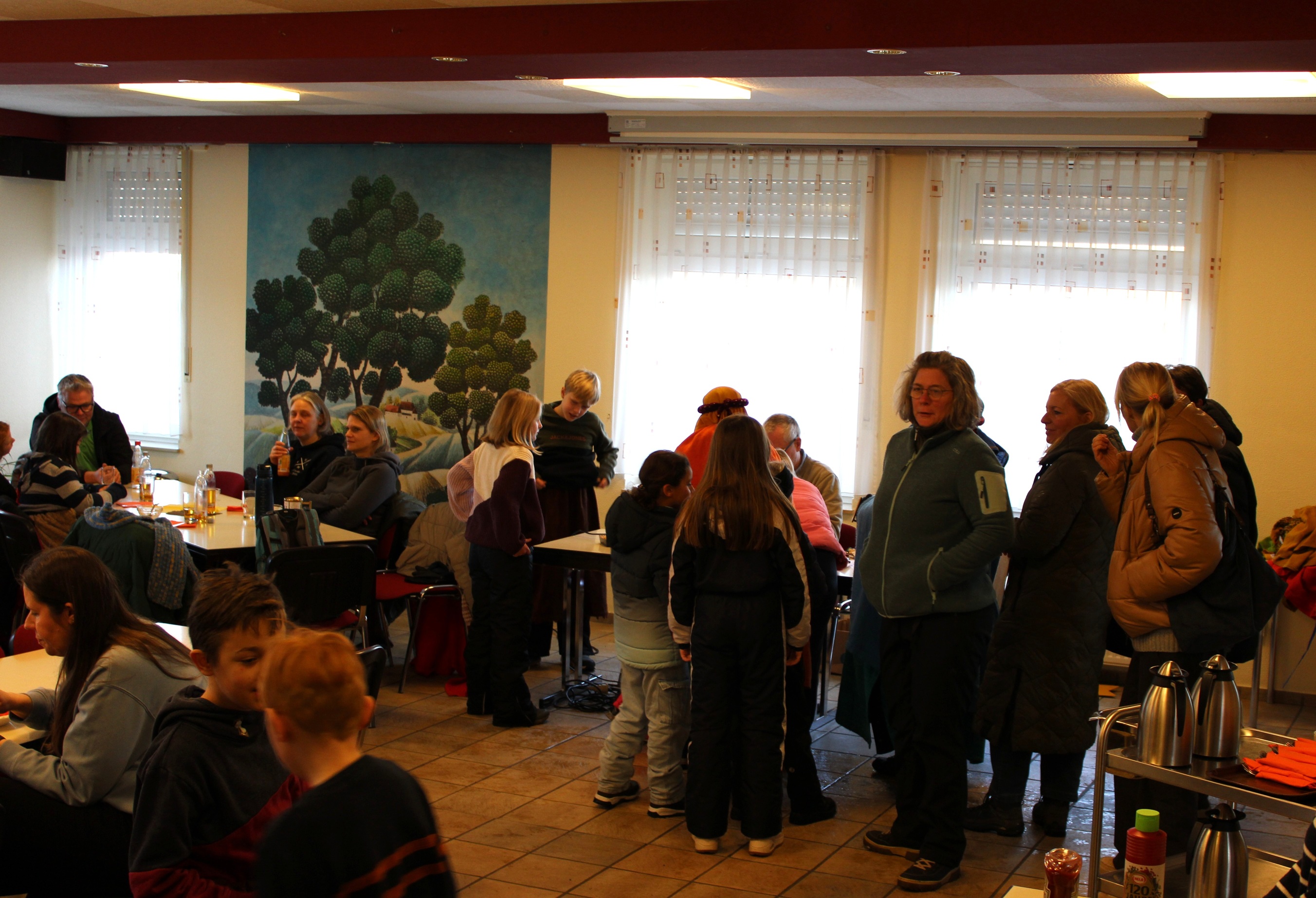 Zur Mittagszeit kehrten die Kinder ins Pfarrheim zurück, um sich aufzuwärmen, die Büchsen zu leeren und sich kulinarisch verwöhnen zu lassen: Nudeln mit Tomatensauce und ein süßer Nachtisch – eine kleine Stärkung nach dem anstrengenden, aber erfüllenden Vormittag.